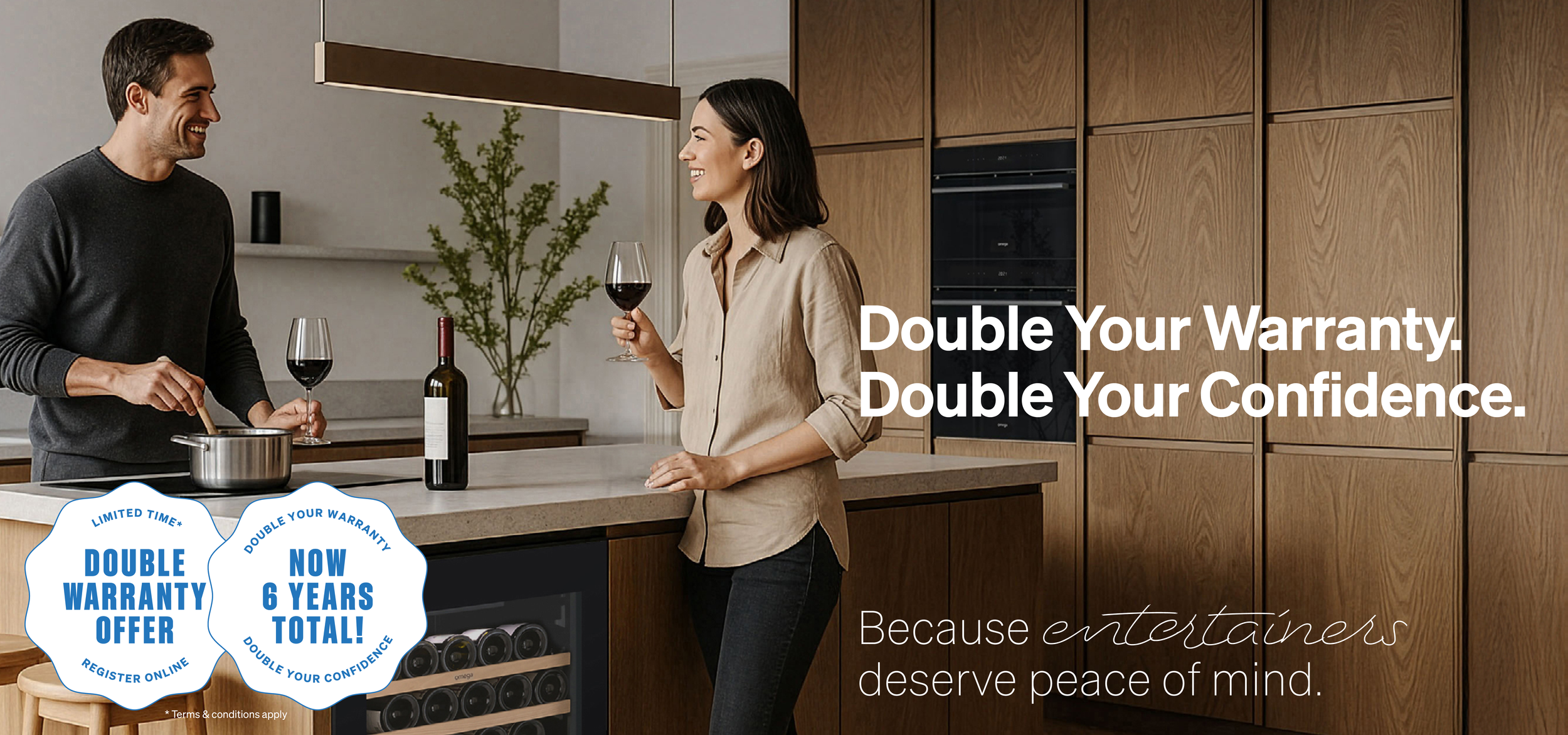 As part of a limited-time offer, all eligible* Omega cooking appliances, refrigeration and built-in wine and beverage cabinets purchased from authorised Omega retailers between 1 March 2026 and 31 May 2026 will receive an additional 3 years bonus warranty, free of charge, upon successful registration.